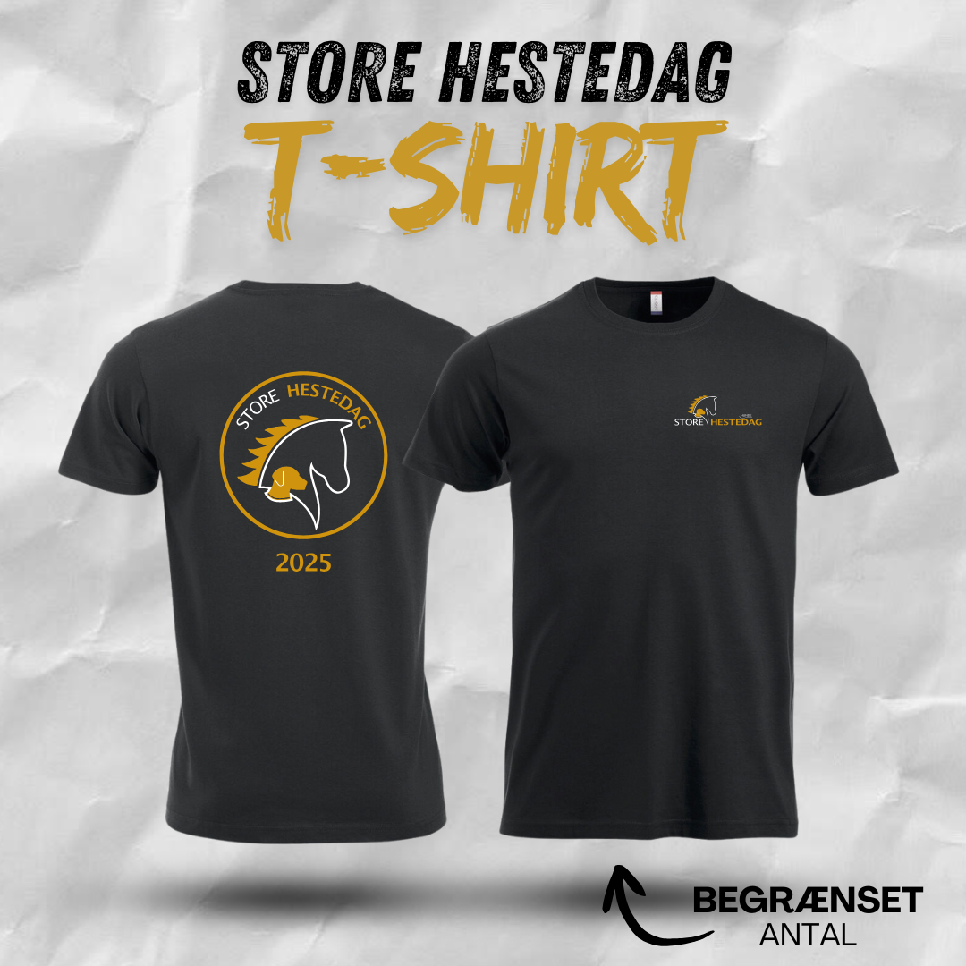 Nu kan du forudbestille årets helt nye, lækre t-shirts og cardigans med årstal og Store Hestedag-logo.